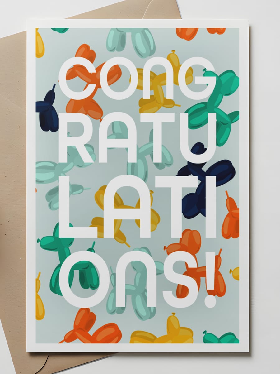Colorful, energetic, and full of positive emotions, this card is a visual embodiment of joy. The bright balloon figures and large “Congratulations!” inscription perfectly capture the mood of every holiday, achievement, and moment of good news. It’s the perfect choice for celebrating any success, congratulating someone, or simply sharing joy.